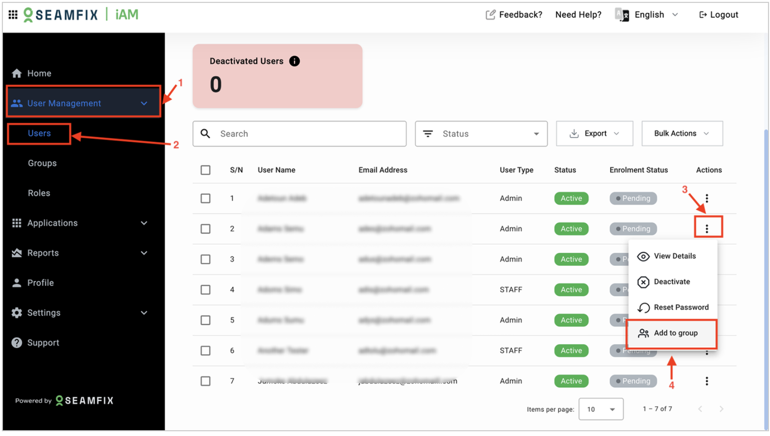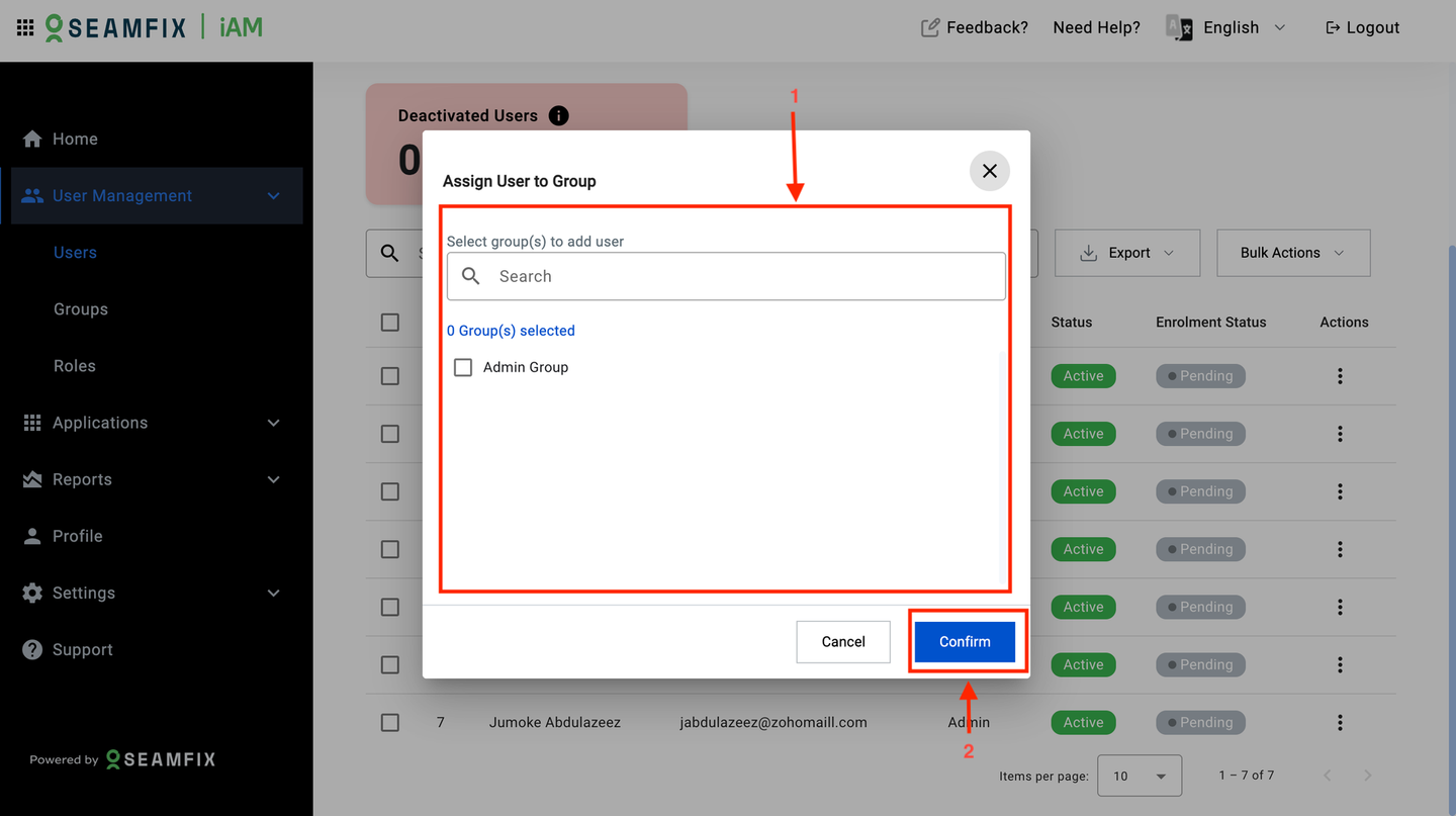 - Navigate to User Management: Go to User Management > Users and select the user you want to assign to a group.